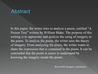 In this poem Blake creates a masterful metaphor strengthened by his. A critical reading of a classic poem analysed by Dr Oliver Tearle. This article aims to analyze William Blakes poem A Poison Tree from a stylistic point of view.